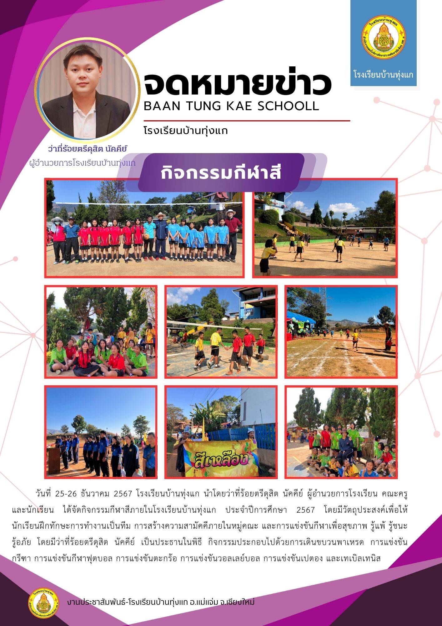 จัดกิจกรรมกีฬาสีภายในโรงเรียนบ้านทุ่งแก ประจำปีการศึกษา 2567